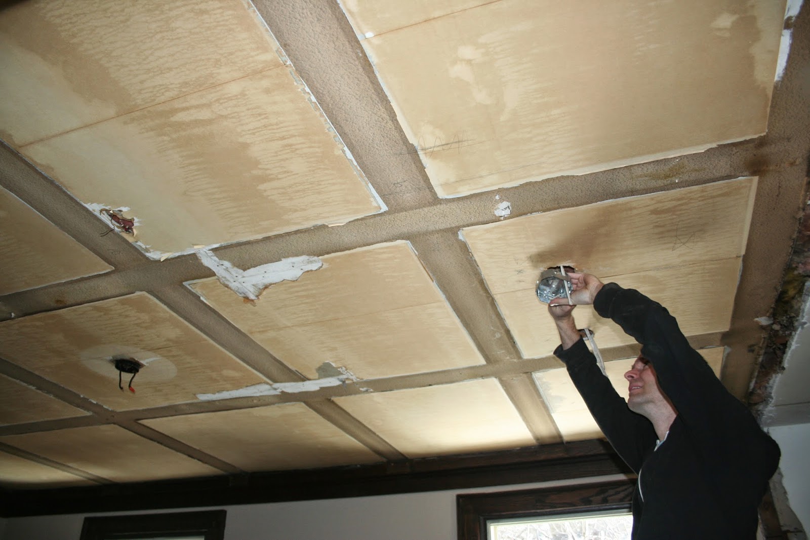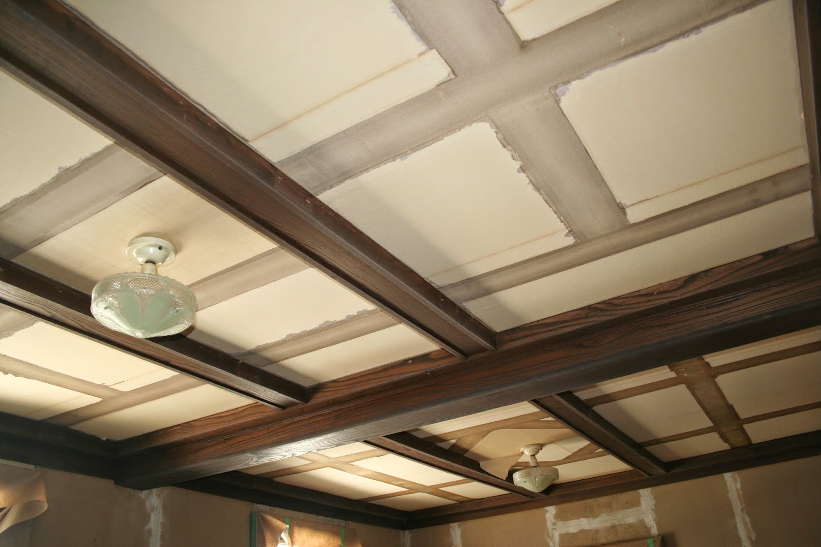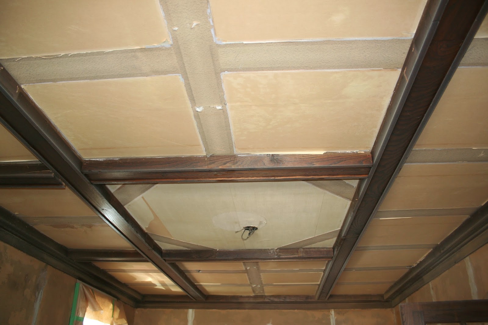 We’ve asked our contractors to put up drywall on the ceilings. It will just cover the ceilings and give us a smooth, new surface that will be totally paintable. Also it will fit snugly in between each wooden beam, and we’ll just finish the edges with some quarter-round trim.